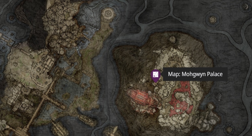 After you soak the cloth, go back to White-Faced Varré and now talk to him. He will then give you a Pureblood Knight’s Medal. Use the Medal immediately and you will be teleported to Mohgwyn Palace. Run around the Edge of the Map clockwise until you get to the Southside and find a Site of Grace.